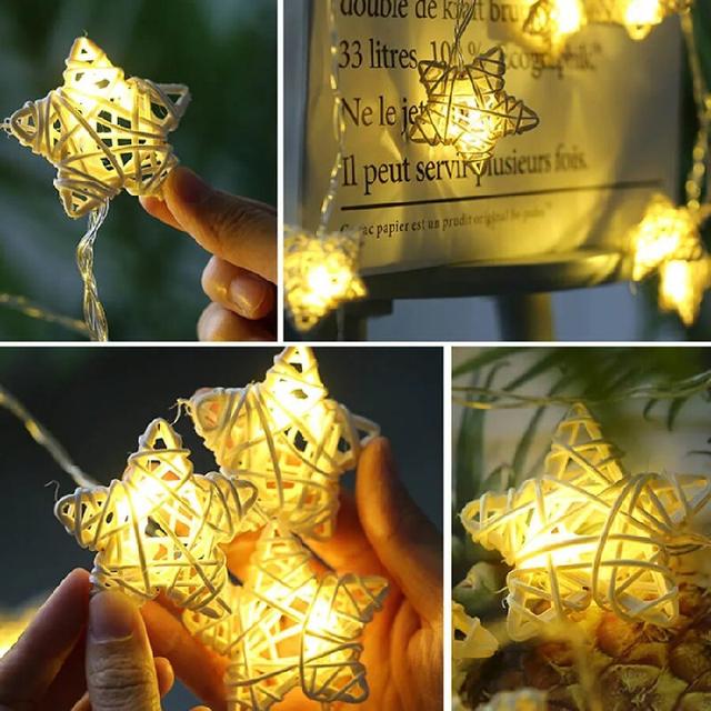 🌟 Світлодіодна гірлянда Зірки з ротанга з 12 теплими білими LED-лампами та довжиною 4 метри – це чудова прикраса для вашої ялинки, яка приносить тепло та затишок у ваш будинок.