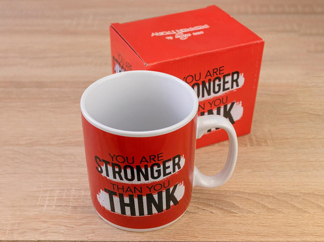 💡 Кожен день – це новий виклик, і кружка "You are stronger than you think" нагадуватиме вам, що ви сильніші, ніж здається! Її яскравий червоний дизайн із натхненною фразою додасть мотивації.